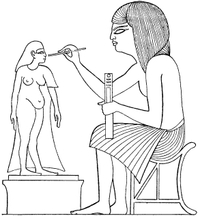 Правда, в учебнике для ученых писцов выражено большое презрение к «этому глупому занятию», но в действительности положение художников в обществе было, как правило, совсем не низким. Во времена Древнего царства их главой считался мемфисский верховный жрец; он действительно носил титул «главного начальника художников» и на самом деле исполнял эту должность. Вполне объяснимо, что в обязанности этого высокого духовного лица входила забота об искусстве, поскольку так же, как его бог Птах считался художником среди богов, так и главный служитель этого бога непременно должен был быть главным художником; точно так же служители богини правды в те же времена были блюстителями правосудия. Художники более низкого звания во времена Древнего царства тоже охотно называли себя в честь своего божественного прототипа [383] . Если бы мы могли сделать какие-нибудь предположения о фактах по жреческим титулам более поздних времен, мы пришли бы к заключению, что так же было во все периоды, поскольку все время, пока существовал верховный жрец Птаха, он назывался «главным начальником художников». Но мы едва ли можем поверить, что это было так: в более поздние времена художники были организованы иначе, хотя Птах из Мемфиса оставался их небесным покровителем [384] .