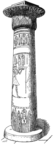 Колонны-бутоны в эпоху Древнего царства: L. D., ii. 61 a, 111 e; при Среднем царстве: L. D., ii. 134 b. Такие подлинные колонны времен Среднего царства существуют до сих пор (в Бени-Хасане и в Берлинском музее).