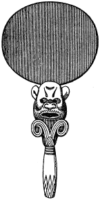 Бронзовое зеркало с головой бога Беса. Ручка имеет форму, условно изображающую цветок (согласно W., ii. 351)