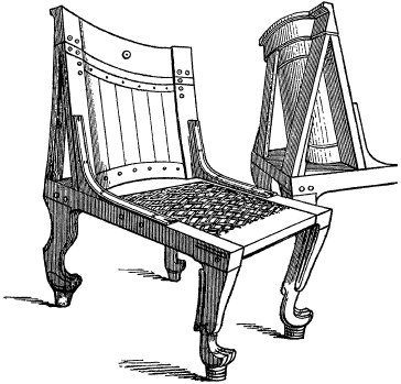 См. иллюстрацию (гл. XI), где показан настенный рисунок, который сейчас находится в Берлинском музее. Похожее кожаное сиденье сохранилось до наших дней (W., I. 414)