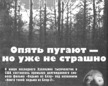 В канун последнего Хэллоуина тысячелетия в США состоялась премьера долгожданного сиквела фильма «Ведьма из Блэр» под названием «Книга теней: ведьма из Блэр-2».