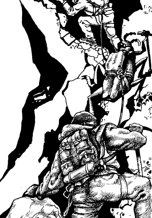 Мы приземлились незамеченными (по крайней мере, так мы считали), убедились, что наш транспорт надежно изолирован от ледопадов, сераков [20] и возможных сходов лавин, оставили «CMG» в режиме укрытия и начали наш тренировочный подъем в «альпийском» стиле на Южное Седло. Погода была изумительной. Условия — идеальными. Мы поднимались, как по лестнице. И это было самым идиотским поступком из всех, на которые мы когда-либо отваживались.