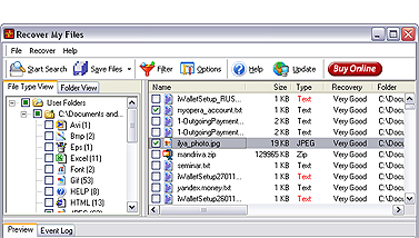 Каждую секунду в мире хватаются за голову несколько пользователей, случайно удаливших важные файлы. Читатели "КТ", конечно, не относятся к числу этих несчастных, ведь они читают нашу рубрику, однако береженого бог бережет. Сегодня на повестке дня программа Recover My Files, позволяющая восстанавливать не только свежеудаленные файлы, но и реанимировать данные после форматирования диска. Список доступных для обработки носителей включает жесткие диски, дискеты, zip, compact flash, smart media и многие другие съемные устройства. Recover My Files "понимает" следующие файловые системы: FAT 12, FAT 16, FAT 32 и NTFS. Работать с программой одно удовольствие - все интуитивно понятно, и освоить ее не составит труда даже новичку.