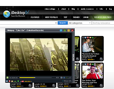 Онлайновый видеоархив YouTube, несомненно, очень популярен, однако его функциональность уже не всегда отвечает запросам пользователей. Гораздо привлекательнее новый сервис iDesktop.tv, предлагающий богатый набор способов работы с видеороликами, размещенными на том же YouTube. Помимо привычных опций изменения размера изображения и просмотра ролика в отдельном плеере (причем реализованы эти функции более удобно), имеется возможность загружать данные на компьютер в любом из поддерживаемых форматов, включая avi, mpg и флэш. Конвертация видеороликов выполняется на лету. Отметим развитые средства поиска и фильтрации, позволяющие сузить круг тем при поиске видеороликов, а также продвинутый плеер: он позволяет не только просматривать данные, но и содержит минимальный набор управляющих функций, включая бесконечный повтор воспроизведения.