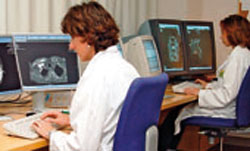 Перед врачом проявляются подсвеченные введенными заранее флюоресцентными частицами ткани: кровеносные сосуды выделяются синим, а опухоли - зеленым цветом.