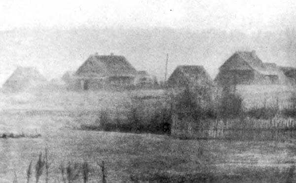 на старый русский манер вдоль пыльных трактов, они медленно и неохотно выступают серебристо-серыми некрашеными бревнами стен из седого утреннего тумана. Лик крестьянских жилищ строг и прост.Молчаливая угроза смотрела на врага темными окнами изб. И враг становился еще более оголтелым и преступным от страха и от предчувствия неминуемого возмездия. Он убивал, насиловал, уничтожал. И это село — Святое — сжег дотла.
