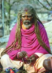Садху — вечные пилигримы... Они идут в длинных балахонах, или одних набедренных повязках, или даже почти без них мотая косматыми головами; тела их раскрашены самыми невероятными узорами. Они не стригут, не моют и не расчесывают голову, выполняя данные богам обеты. С достоинством выступают, медленно перебирая четки тонкими пальцами, санияси — ученые мужи в оранжевых одеждах, посвятившие свою жизнь служению богам и изучению священных книг. А за ними валом валит люд попроще: мужчины в застиранных рубахах — даура и украшенные гирляндами желтых, пряно пахнущих цветов женщины в цветастых кофтах — чоло, оставляющих открытой полоску спины и живота с пупком.