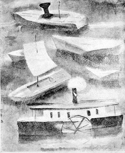 А на лужах кораблей много-много плавает: и деревянные, и бумажные, и всякие… А у Мити так — жестяной, с трубой, с колесом, — настоящий.