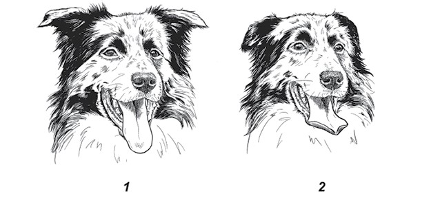 1 – расслабленный язык свидетельствует о спокойном состоянии собаки; 2 – напряженный язык, края загибаются «ковшом» – собака нервничает