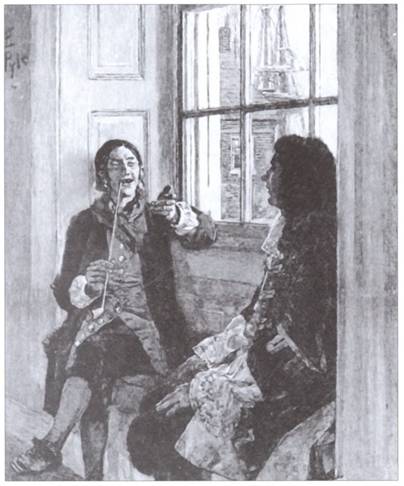 Томас Тью рассказывает о своих путешествиях своему другу, губернатору Нью-Йорка Флетчеру. Художник Г. Пайл