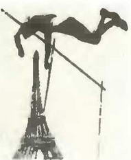 Родченковский «Прыжок» через Эйфелеву башню — не только спортивная гипербола, это еще и символ преодоления: преодоление барьера инертности в науке, устаревшей парадигмы, (стр. 16). Коллаж А. Эстрина