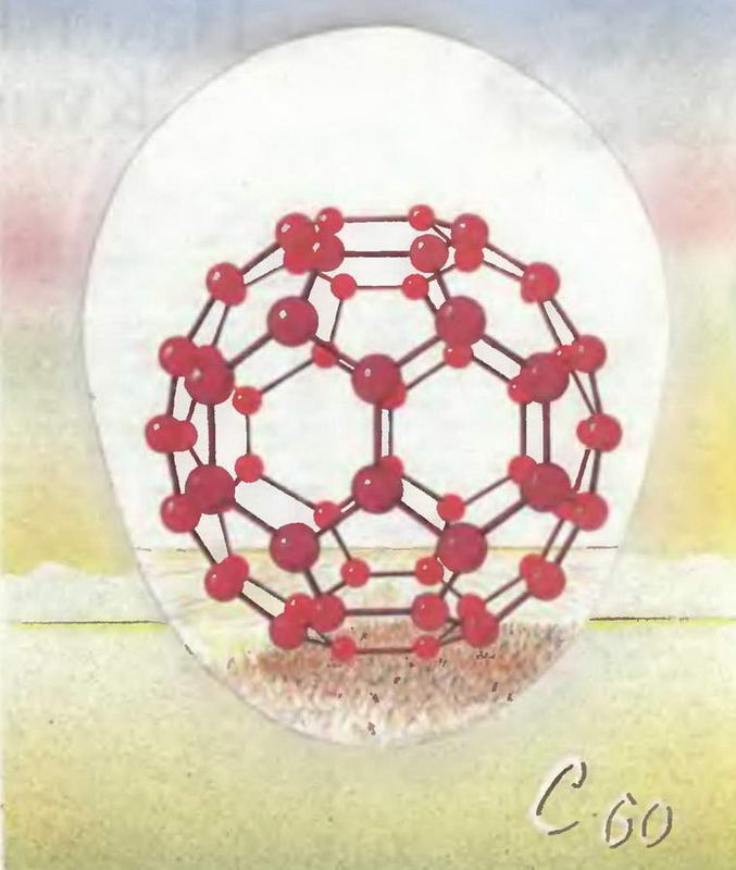 Перед вами не символ европейского футбола и не геодезический купол, сооруженный по проекту американского архитектора Р. Бакминстера Фуллера на Всемирной выставке в Монреале. Эту новую разновидность углерода С60 , названную бакминстерфуллереном, получили в 1985 году Роберт Ф. Керл, Гарольд У. Крото и Ричард Э. Смолли, удостоенные за это Нобелевской премии по химии 1996 года.