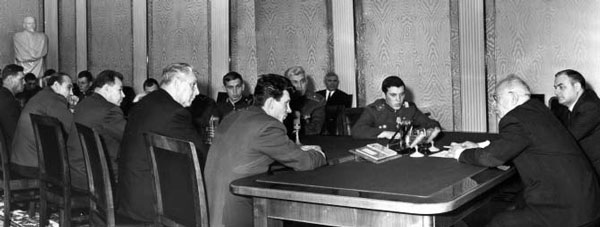 На приеме у Председателя Президиума Верховного совета СССР В. Подгорного после событий на острове Даманский. В. Бубенин — слева, спиной за столом.
