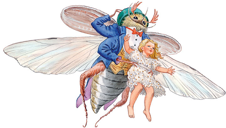 Потом к ним пришли с визитом другие майские жуки, которые жили на том же дереве. Они оглядывали девочку с головы до ног, и жучки-барышни шевелили усиками и говорили: