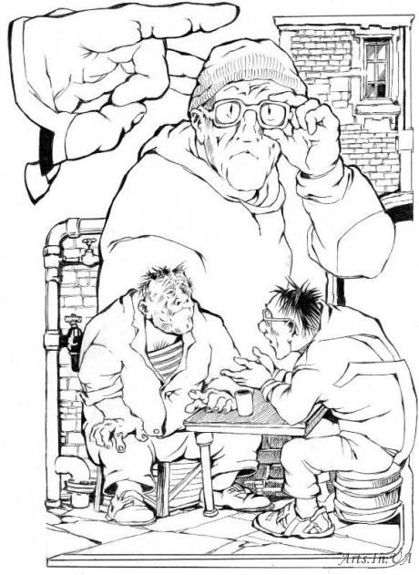 Поэтому рассказ получился сбивчивый и куцый. Вдобавок, выпившего натощак Колодникова сплошь и рядом заносило куда-то не туда. То он вдруг ударялся в философию, то принимался яростно спорить с кем-то, в бендёжке не присутствующим. Мудрый Борька его, тем не менее, не прерывал и слушал всё подряд. Должно быть, взгляды Алексея на жизнь интересовали электрика нисколько не меньше, чем приключившееся в арке побоище.