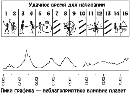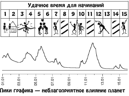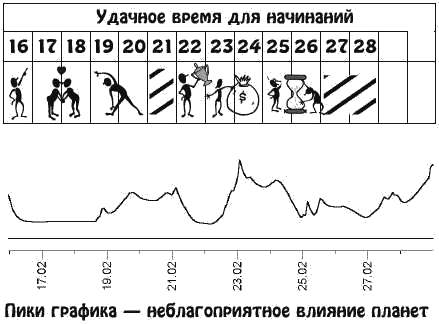 Приводимые графики показывают динамику неблагоприятного влияния планет. Пики графика – точки наиболее сильного воздействия неблагоприятных факторов на здоровье и дела человека.