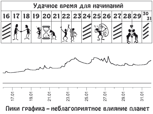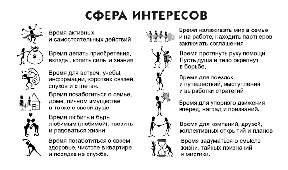 Символические фигурки покажут, какой звезды хотели бы видеть деятельность человека в тот или иной день календарного месяца. Дата, где фигурки нет, имеет неясно выраженную транзитную ситуацию и несет на себе нагрузку ближайших окружающих дней.