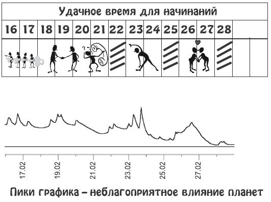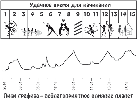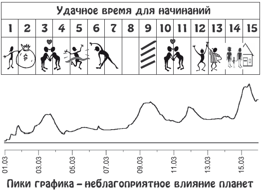 Приводимые графики показывают динамику неблагоприятного влияния планет. Пики графика – точки наиболее сильного воздействия неблагоприятных факторов на здоровье и дела человека.