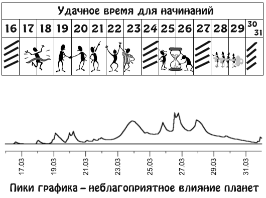 После 20 марта энергии станет больше. Участие в спортивных мероприятиях, неожиданные поездки, новые знакомства прогонят прочь тоску и печаль. Появятся творческие идеи. Возможна влюбленность, не исключено зачатие. Вы будете способны на риск и нестандартные поступки. Однако неконтролируемая импульсивность может стать причиной несчастного случая, поэтому соблюдайте осторожность. Подойдите творчески к решению домашних вопросов, возьмите на себя организацию семейных праздников или общих развлечений.